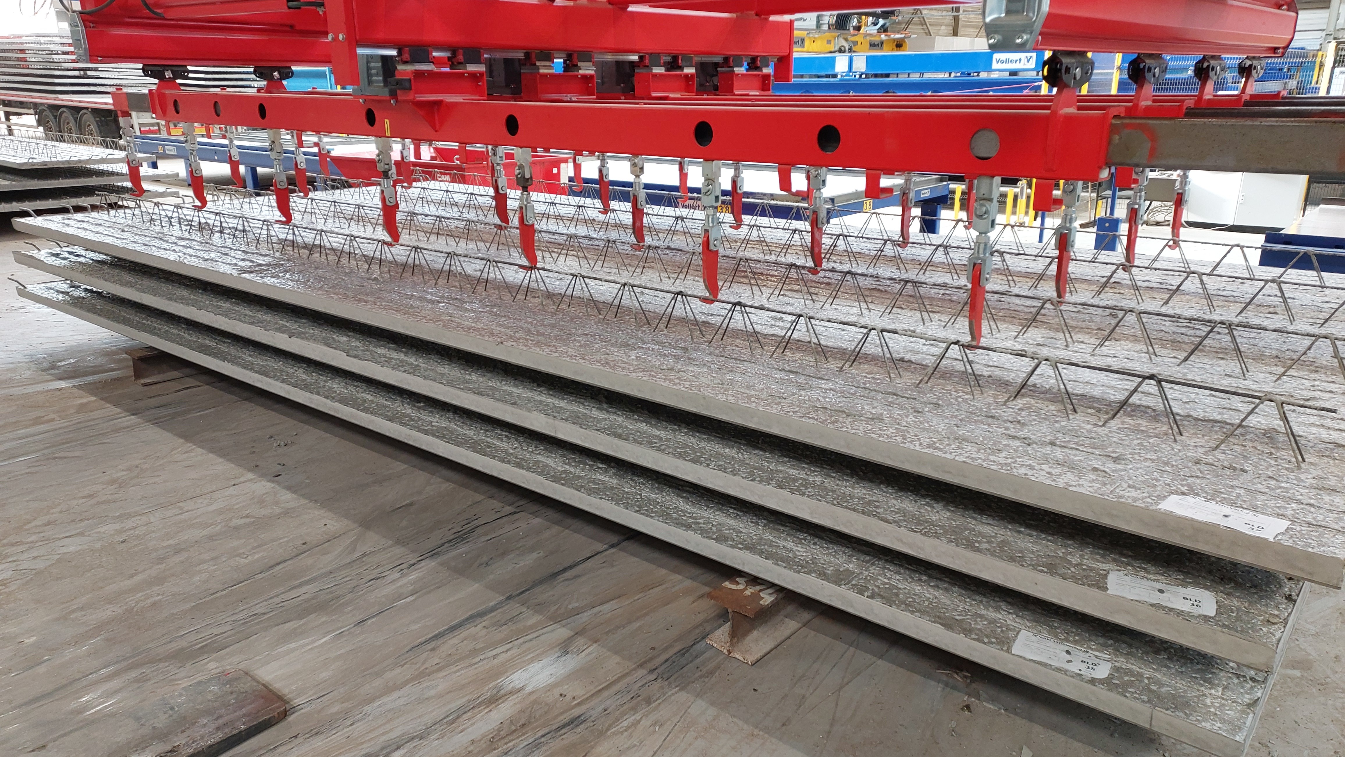 Standaard predallen, ook gekend als breedvloerplaten, hebben onderwapening en opstaande tralieliggers, verankerd in de opstort.